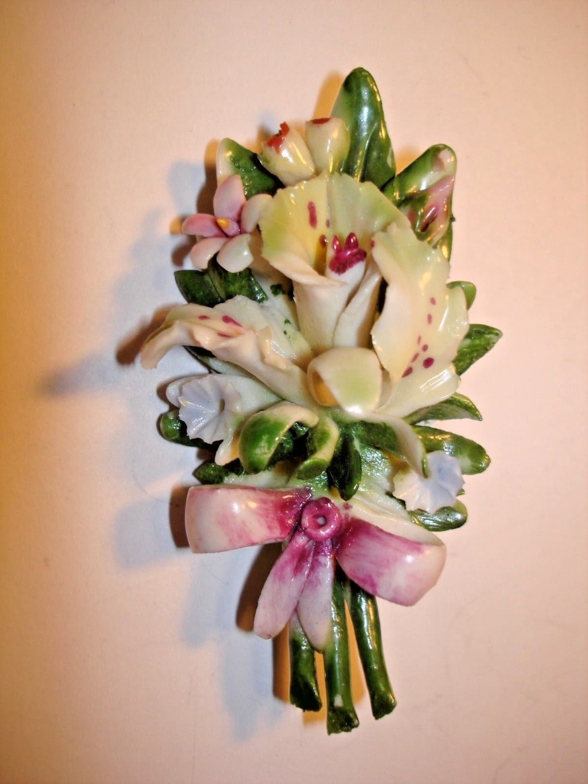 Title (ebay affiliate link): Vintage Capodimonte Savastano Porcelain Orchid Flower Jewelry Brooch Pin