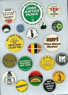 Title (ebay affiliate link): 20 Vintage 1977-90s Black Civil Rights Justice Pinback Buttons - PUL Project