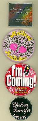 Title (ebay affiliate link): 4 Vintage 1980s-90s Gay Pride Pinback Buttons - Seize The Spirit Stonewall 25