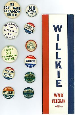 Title (ebay affiliate link): 11 Vintage 1940s Wendell Willkie Political Campaign Pinback Buttons &1 Ribbon