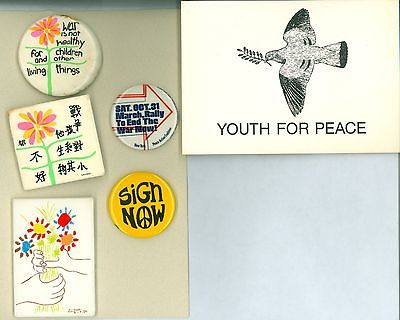 5 Vintage 1970s Peace & Anti-War Vietnam Cause Pinback Buttons Flier Youth Peace