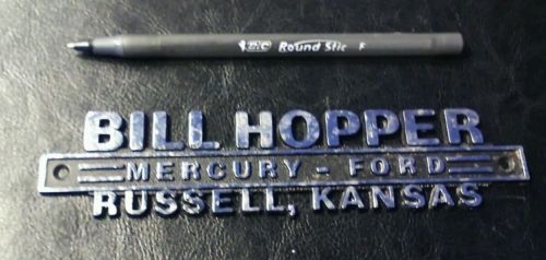 METAL BILL HOPPER RUSSEL KANSAS CAR DEALERSHIP ADVERTISING BADGE PLAQUE!!