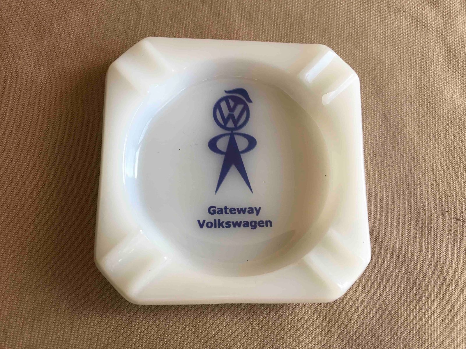 Title (ebay affiliate link): Old Milk Glass Promotional Advertising Ashtray Gateway Volkswagen VW St. Louis