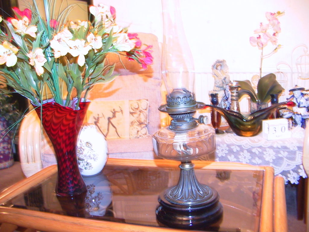 Early Victorian double burner oil lamp