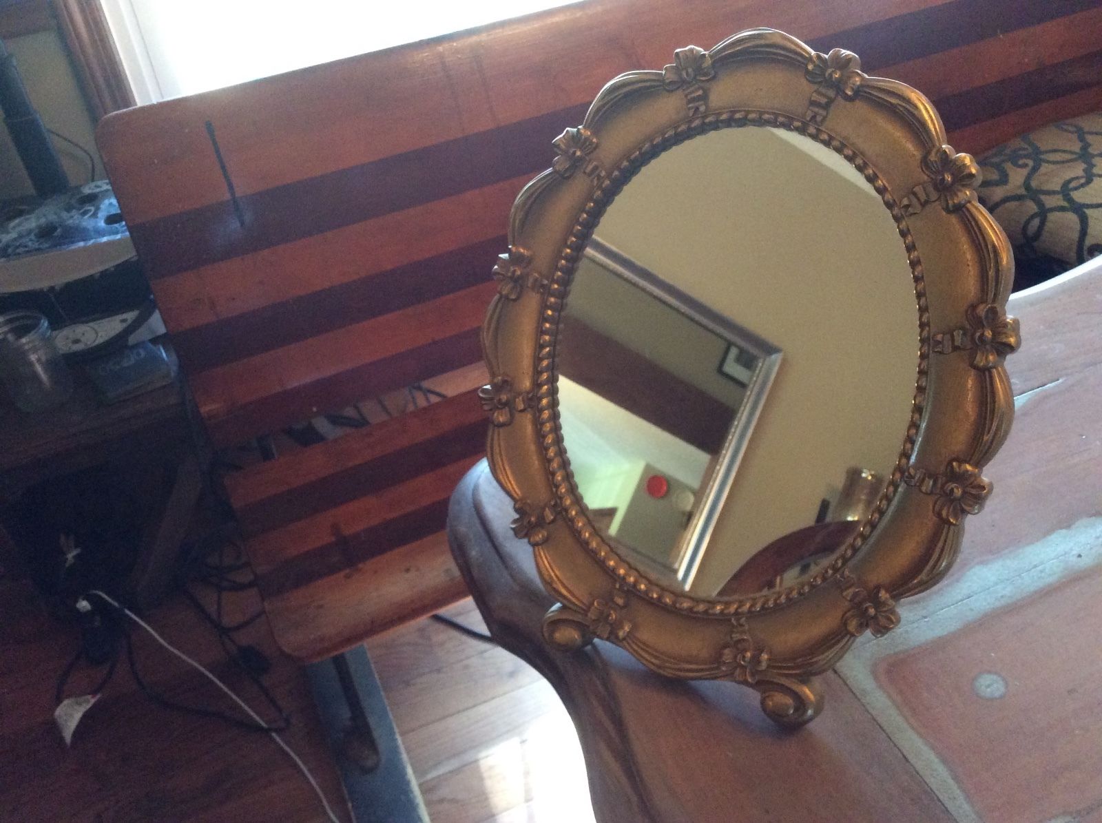 Title (ebay affiliate link): antique vanity dresser mirror freestanding, gold, small