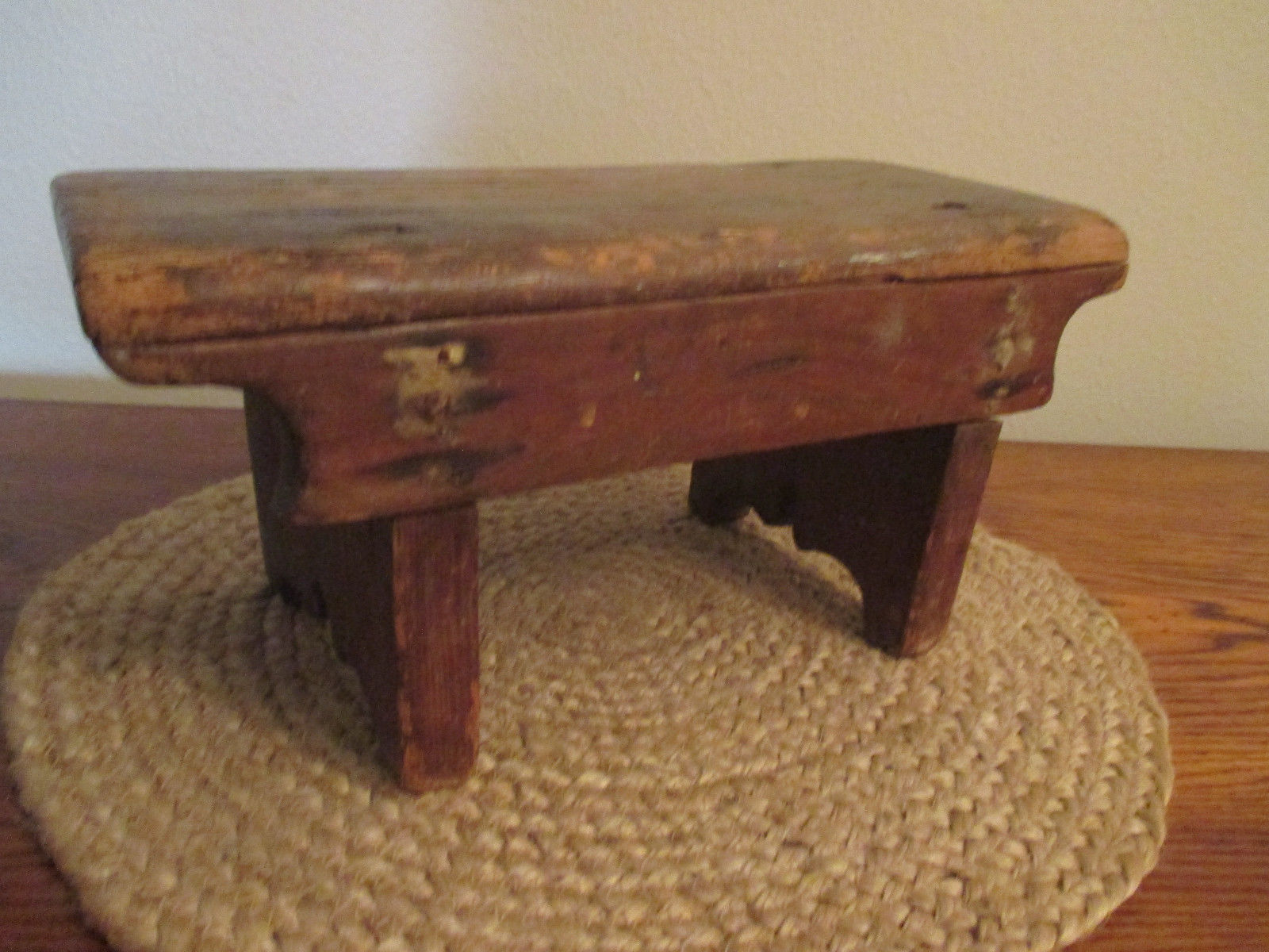 Title (ebay affiliate link): VERY ANTIQUE Childs Toddlers Wood Stool Bench Vintage Chair.