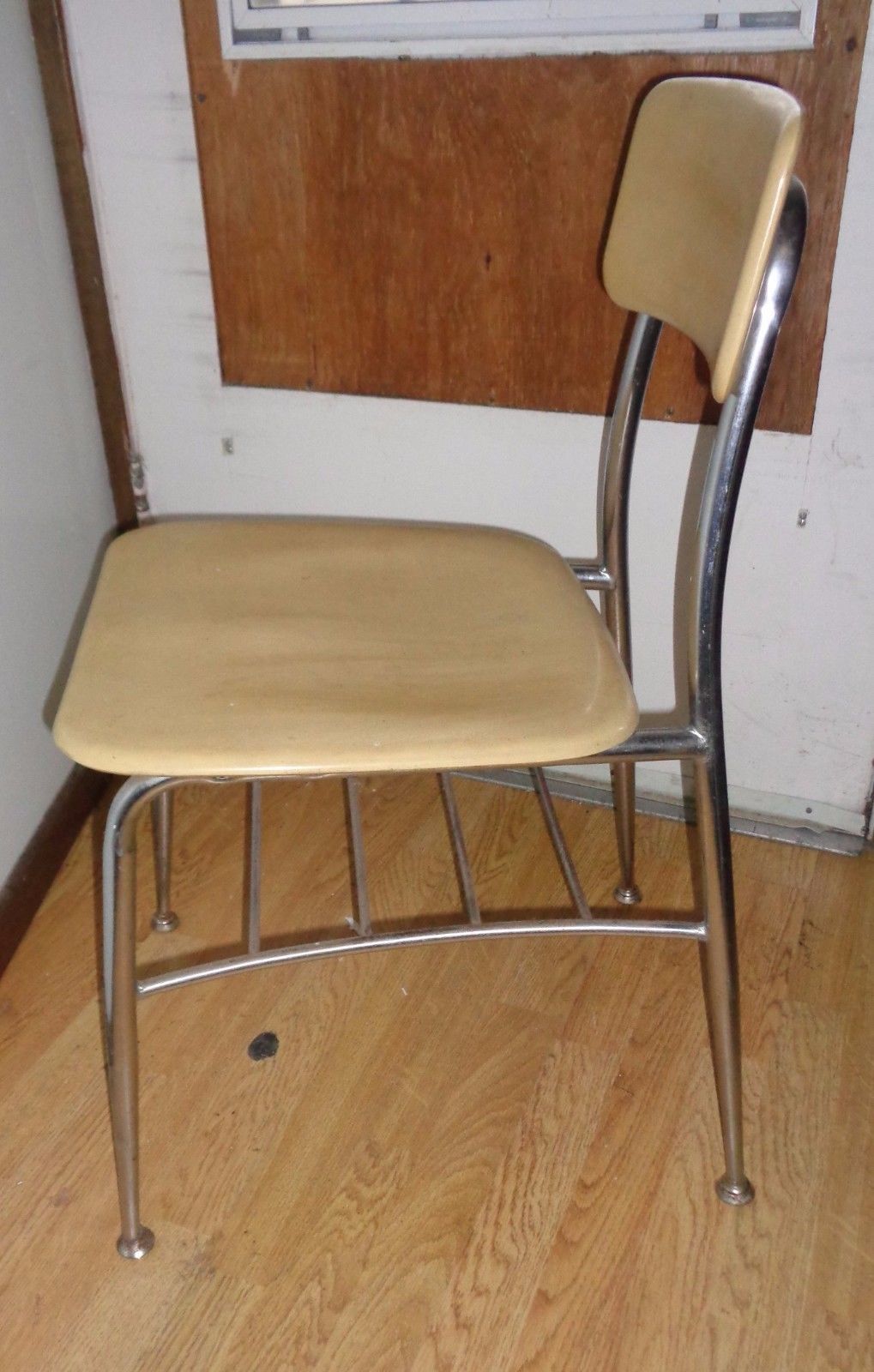 Title (ebay affiliate link): Heywood Wakefield High School Chair Yellow Back Seat Chrome Legs Danish Modern