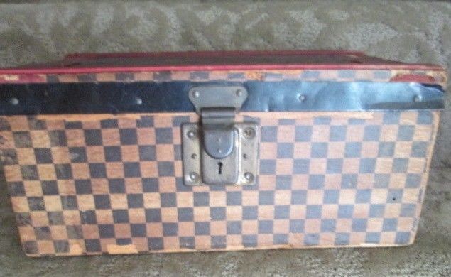 Title (ebay affiliate link): ANTIQUE toy TRUNK for doll WITH SKELETON KEY METAL LATCH wood & metal13"x 7"