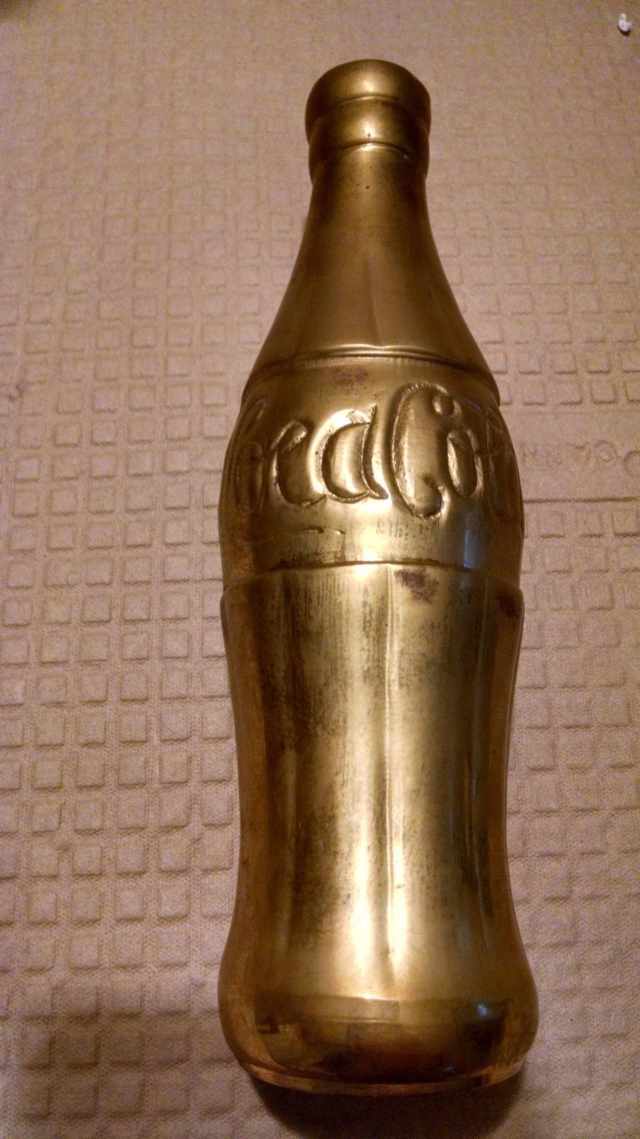 Title (ebay affiliate link): Vintage Solid BRASS "Coca-Cola" Embossed Bottle 7"