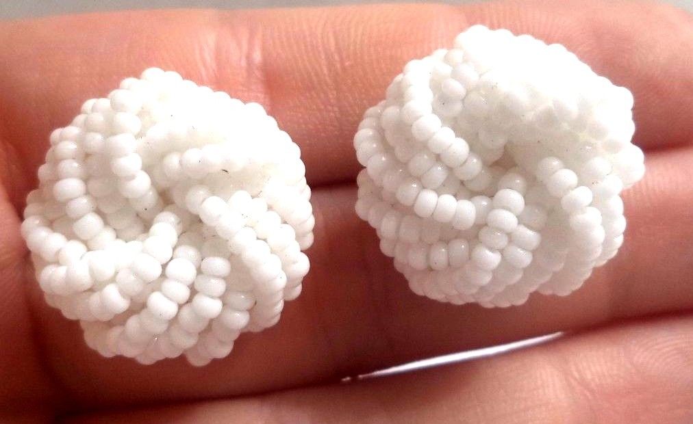 Title (ebay affiliate link): STUNNING VINTAGE ESTATE WHITE MILK GLASS BEADED PIERCED 7/8" EARRINGS!!! 7079Z