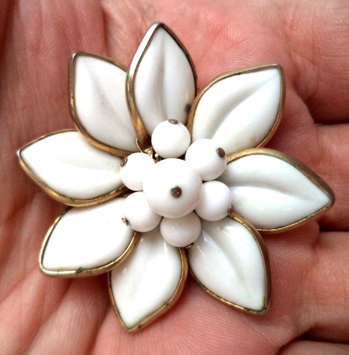 Title (ebay affiliate link): STUNNING VINTAGE ESTATE SIGNED CORO POURED MILK GLASS 1 3/4" BROOCH!!! 4386U