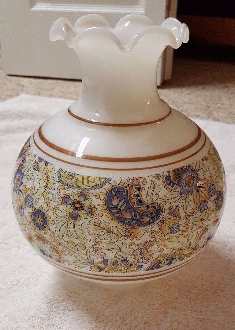 Title (ebay affiliate link): GWTW Gone with the Wind Milk Glass Paisley Hurricane Oil Lamp Shade 3" Fitter