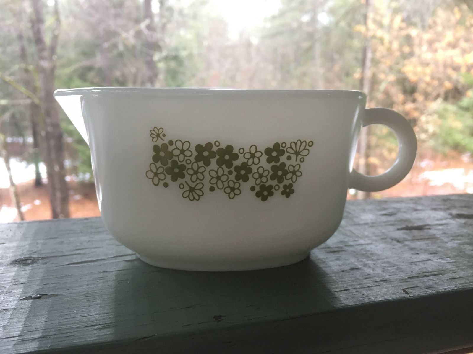 Pyrex Corning Crazy Daisy Gravy Boat Milk Glass