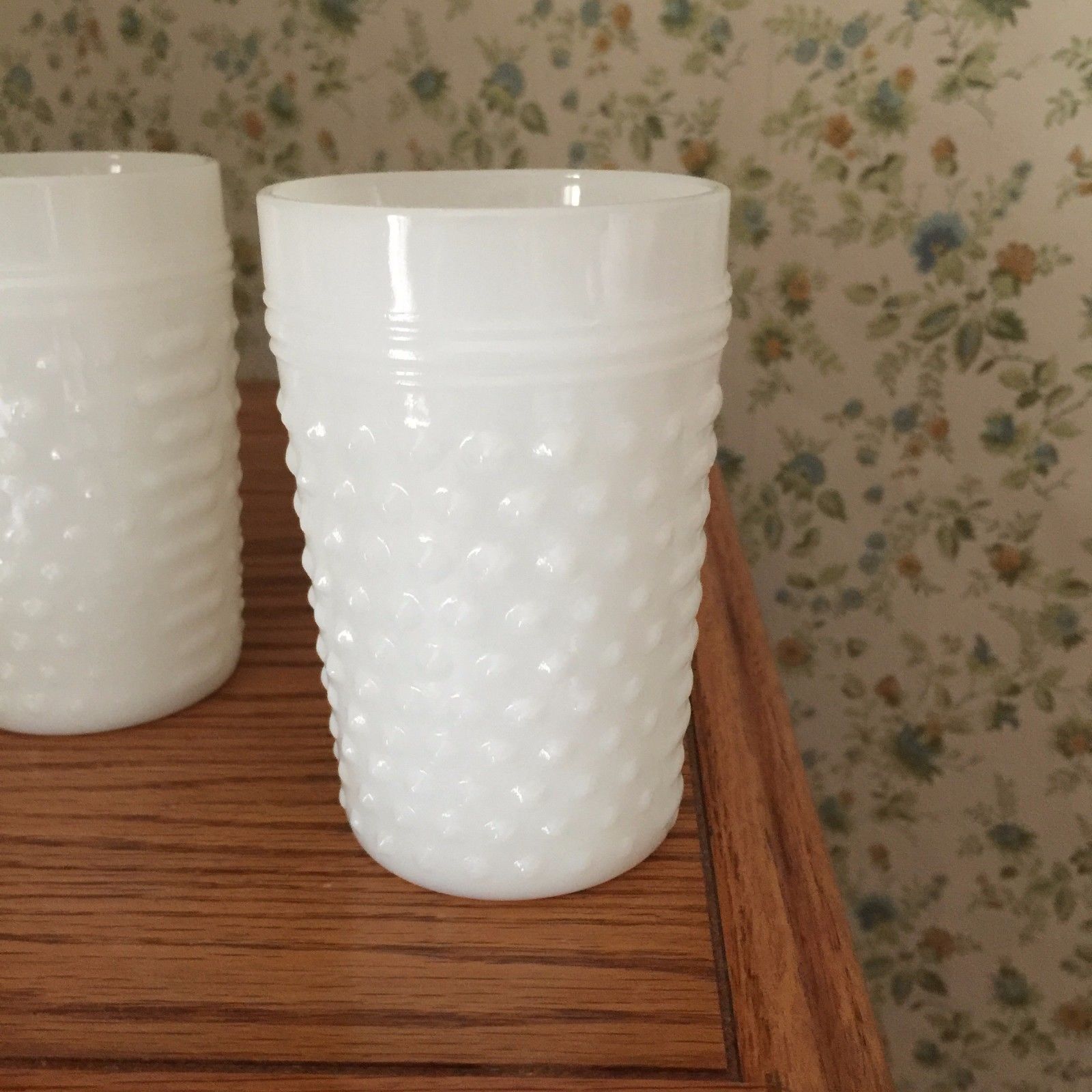 Title (ebay affiliate link): Set of 4 4 1/2" tall Hobnail White Milk Glass Water Tumblers