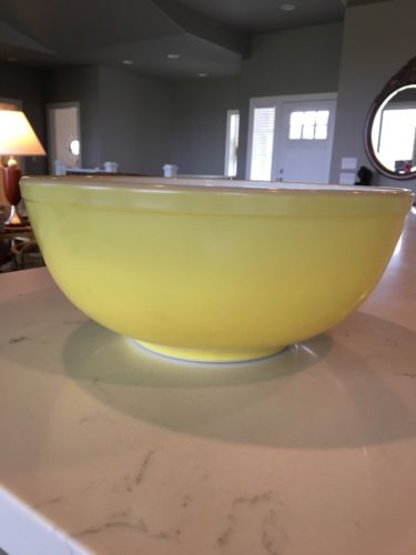 Title (ebay affiliate link): Vintage Pyrex 404 Milk Glass YELLOW PRIMARY COLOR 4 Quart Mixing Bowl