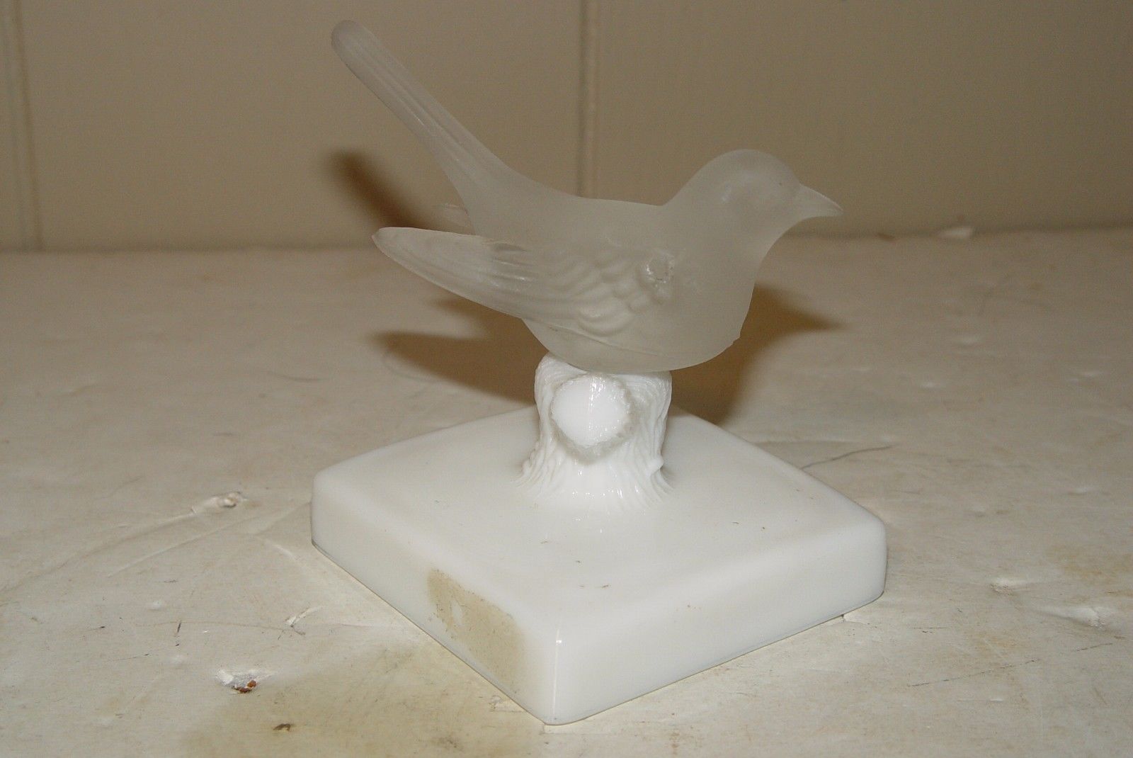 Vintage Westmoreland Frosted Glass Bird Figurine on Milk Glass Branch Statue