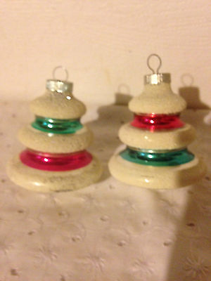 Title (ebay affiliate link): (2) MICA SNOW STRIPES SHINY BRITE MERCURY GLASS XMAS ORNAMENTS BELL UFO