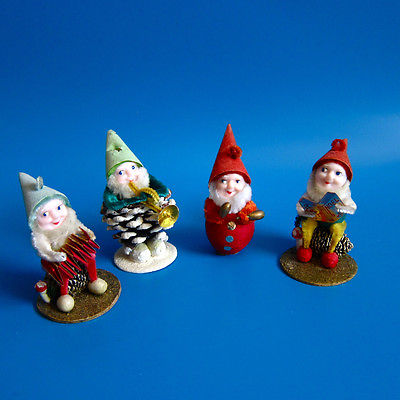Title (ebay affiliate link): VTG 1940s 50s Putz Gnomes JAPAN pinecone spun cotton musical cardboard xmas mica