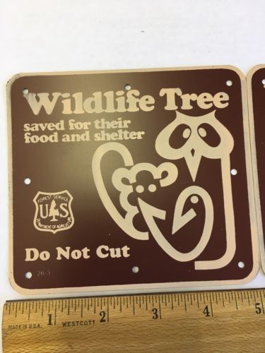 Title (ebay affiliate link): Lot of 2 US Forest Service Wildlife Tree Do Not Cut Metal / Aluminum Signs