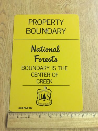 Title (ebay affiliate link): US Forest Service National Forest Property Boundary Metal Sign Unused Creek