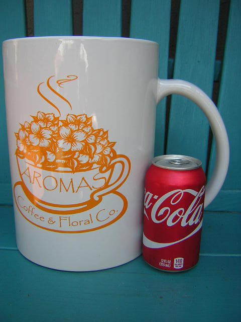 Title (ebay affiliate link): 9 3/4" ADVERTISING CERAMIC COFFEE MUG aroma coffee & floral company 1 1/2-GALLON