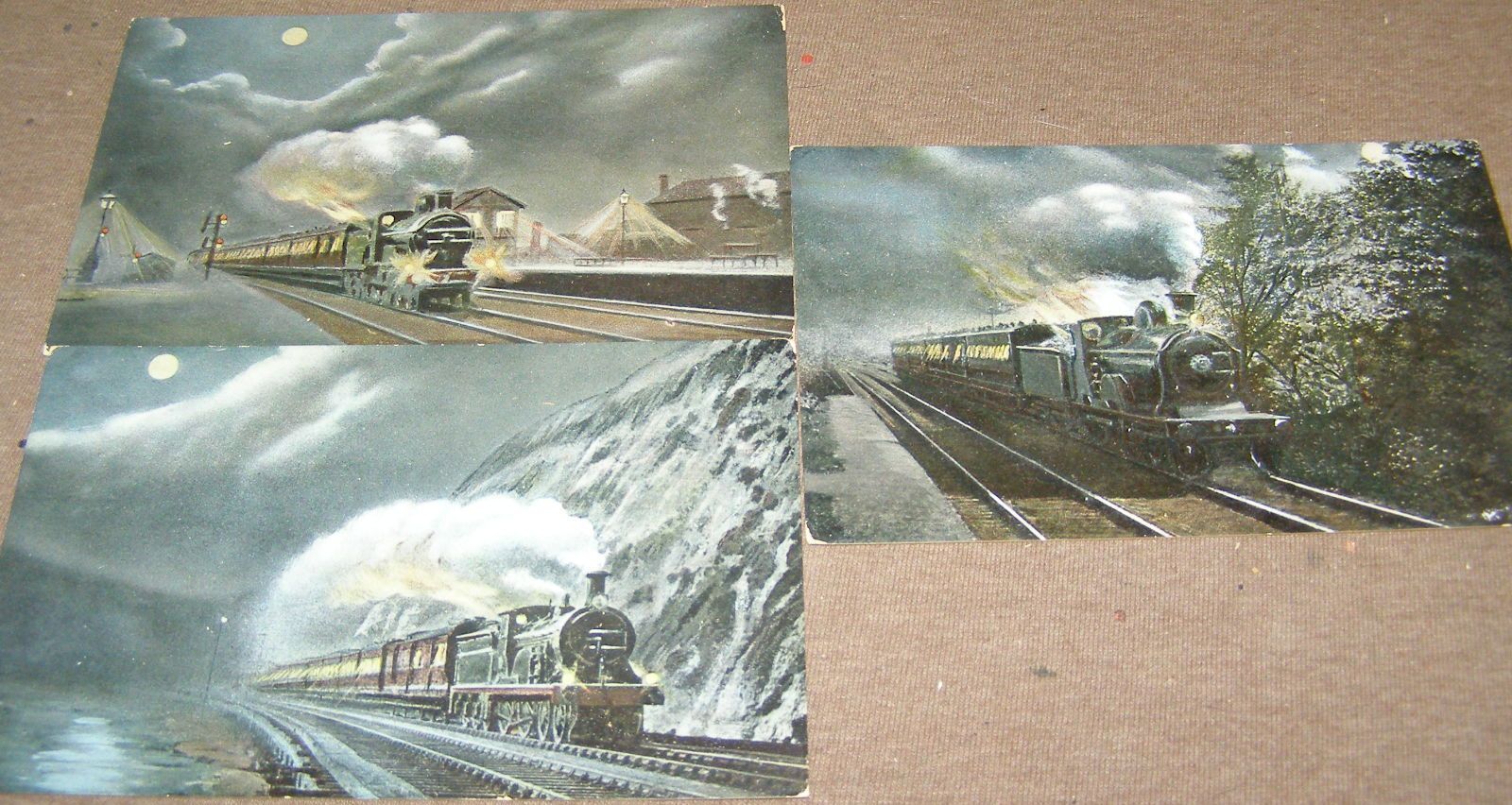 BRITISH POST CARDS 3 MOONLIT COLOR STEAM SCENES NEVER USED GOOD
