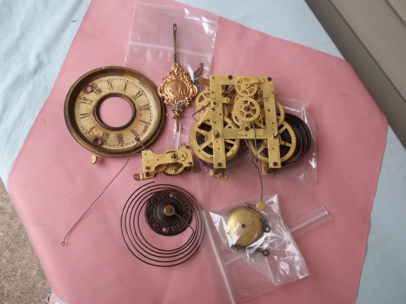 ANTIQUE WATERBURY CLOCK CO. MVT, ALARM & PARTS FOR GINGERBREAD KITCHEN CLOCKS
