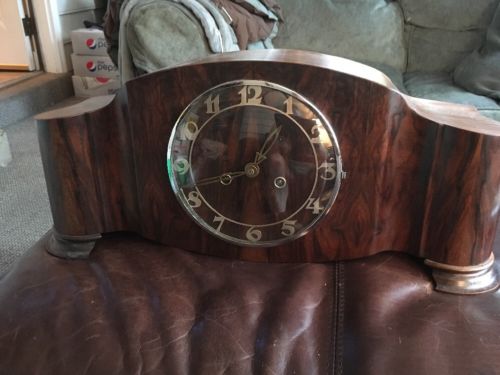 Title (ebay affiliate link): A GORGEOUS ANTIQUE /ART DECO mantle PENDULUM clock! Beautiful wood!