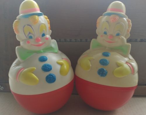 Title (ebay affiliate link): LOT of 2 Vintage 1977 Sanitoy Roly Poly Musical Clowns Hard Plastic Toy for Baby