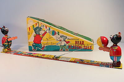 BEAR PLAYING BALL, Japan (TPS) wind-up vintage mechanical tin toy box 1950s EXC