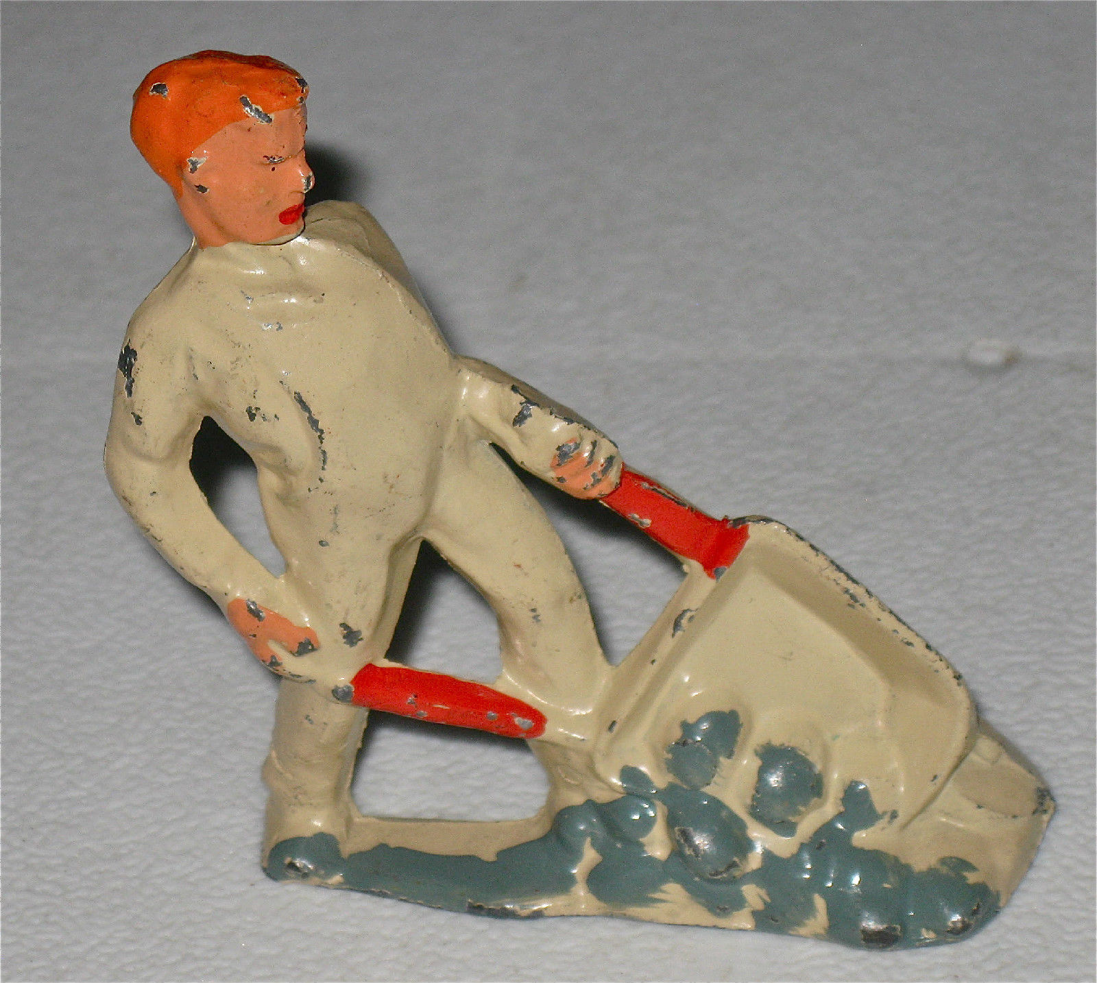 Manoil Happy Farm, Man Dumping Wheel Barrow; Train Layout, Christmas Garden