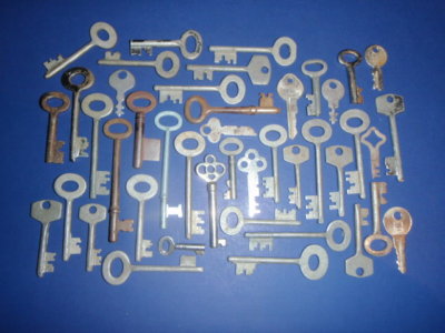 Antique Vintage old skeleton key lot furniture lock box