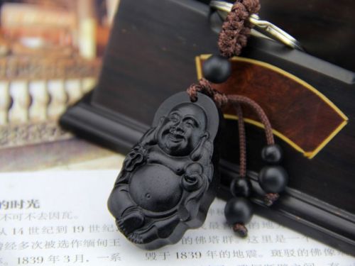 Title (ebay affiliate link): Ebony Wood Carving Chinese Happy Maitreya Buddha Feng Shui Statue Key Chain Ring
