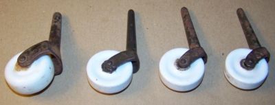 4 VINTAGE ANTIQUE PORCELAIN FURNITURE CASTERS
