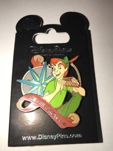 Title (ebay affiliate link): Peter Pan with Compass Never Grow Up Disney Pin 116279