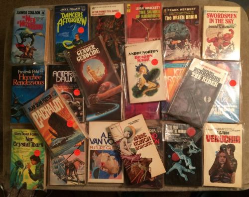Title (ebay affiliate link): Science Fiction Paperbacks Vintage Lot of 23 (C) Del Ray & Ace Pub. Herbert, etc