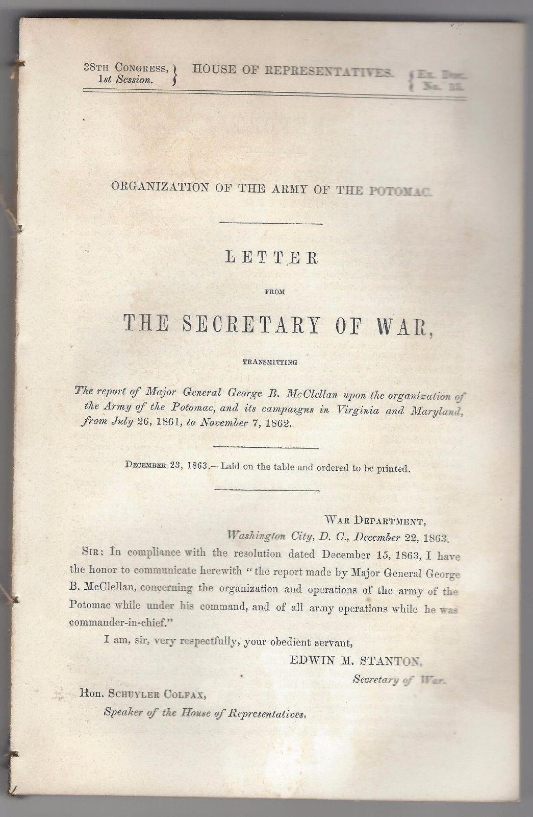 Title (ebay affiliate link): 1863 Report Organization of Armies of the Potomac General McClellan Civil War