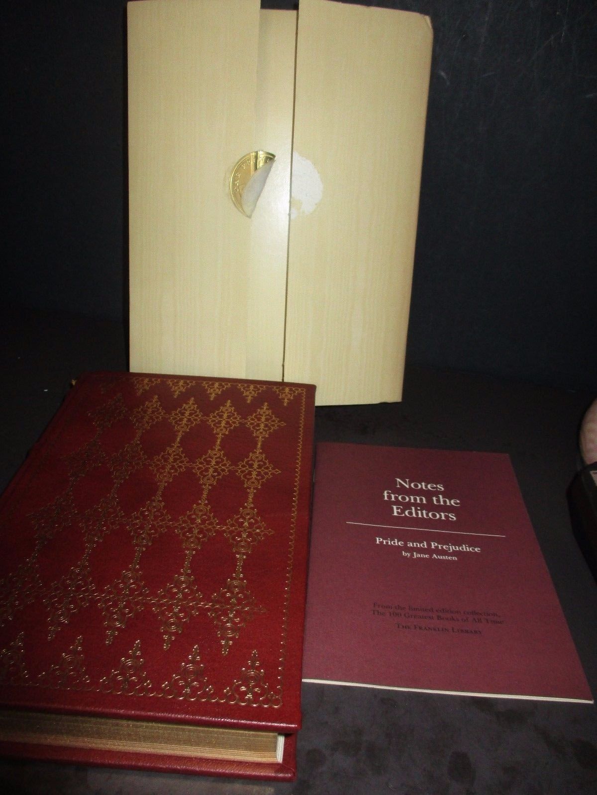 Title (ebay affiliate link): 1980 PRIDE AND PREJUDICE by Jane Austen FRANKLIN LIBRARY Hardcover Book F108 PL