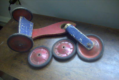 5 VINTAGE METAL WHEELS RUBBER FOR OLD TOYS WOOD PARTS
