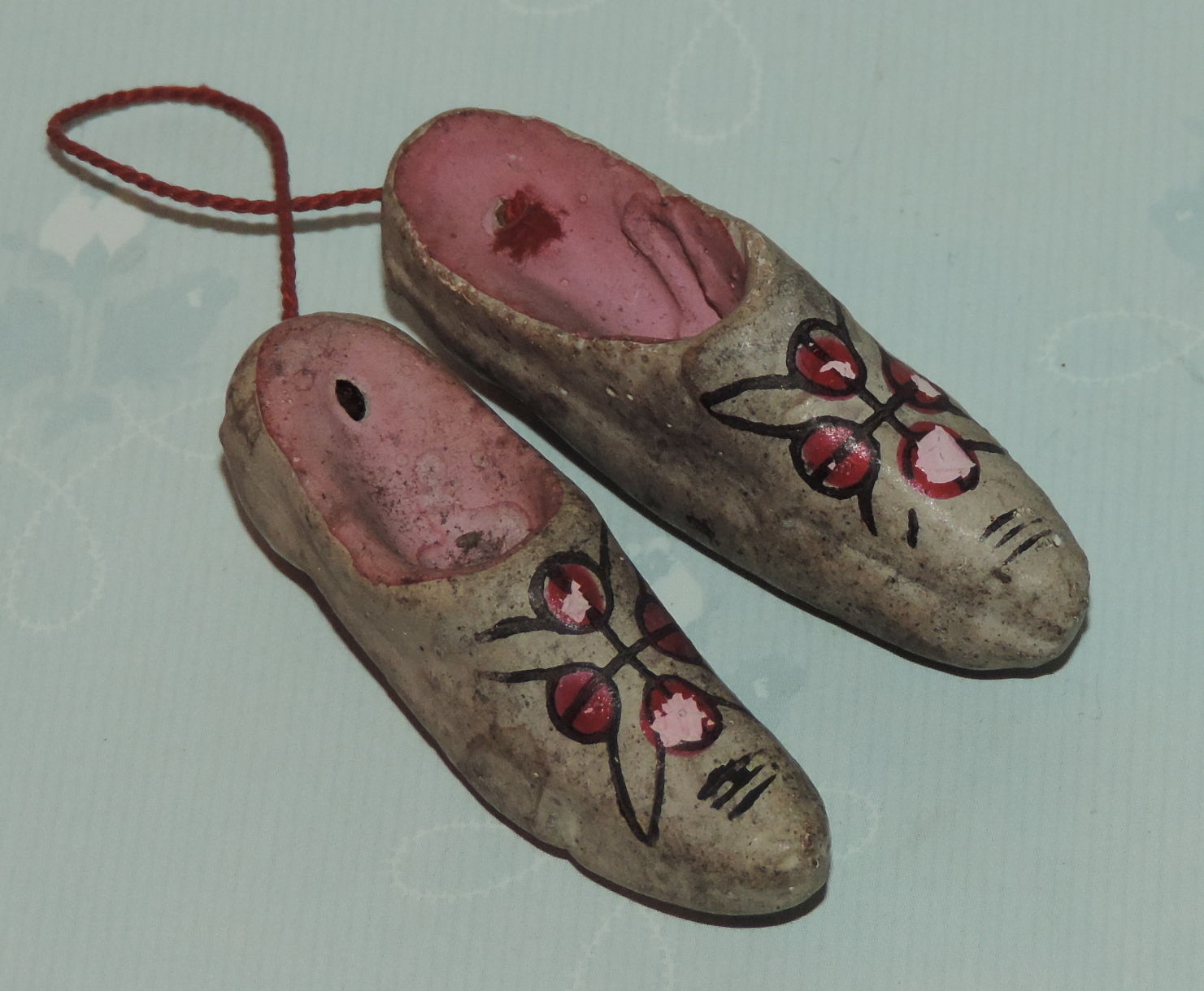 Antique Feather Tree Christmas Ornament Miniature Hand Painted Papermache Shoes