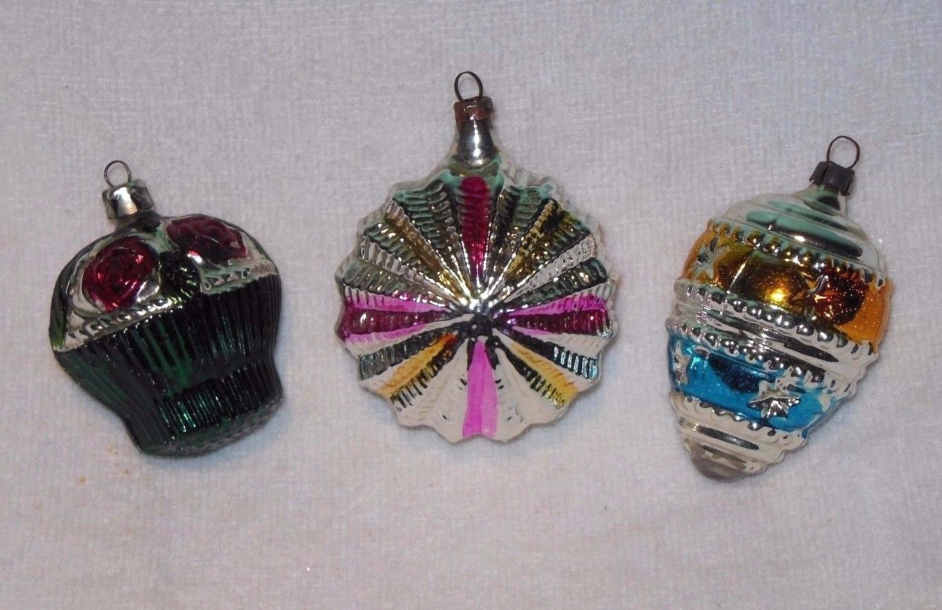 3 Vintage Antique Shaped Mercury Glass Christmas Ornaments West Germany Poland