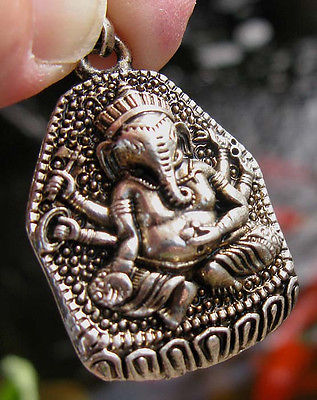 Silver Ganesh Pendant Elephant God Shiva Buddhism Vintage Buddha Hindu Antique ~