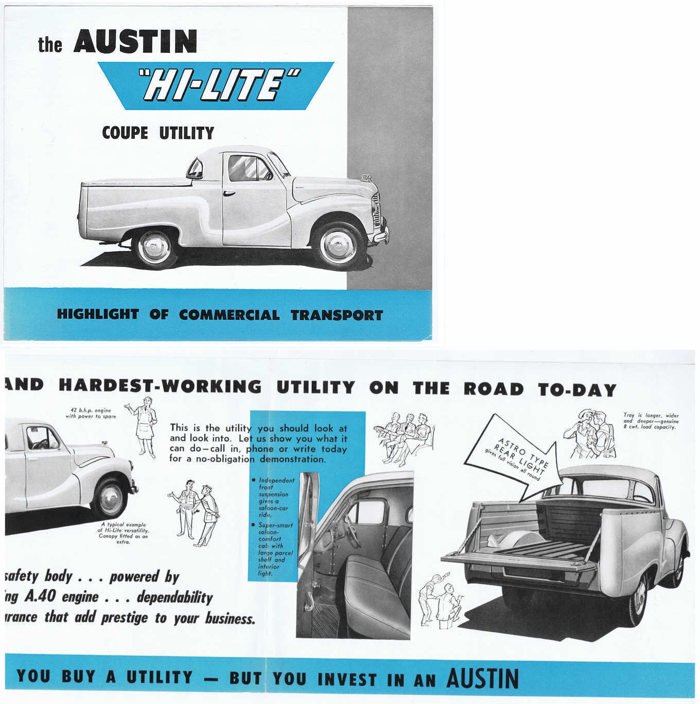 Original c.1950''s Austin Hi-Lite Coupe Utility Australian Car Sales Brochure