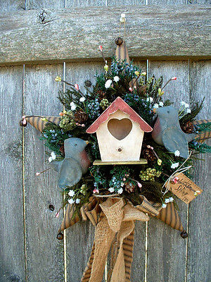 Title (ebay affiliate link): PRIMITIVE BLUE TICKING SPRING STAR~BLUEBIRDS~BIRDHOUSE