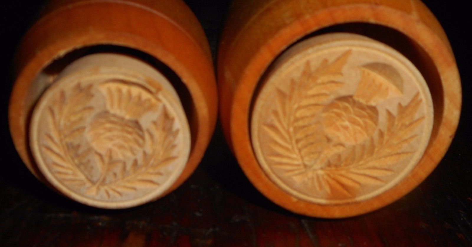 Title (ebay affiliate link): A Pair of Wood Carved Butter stamps Thistle Design 1" and 2"