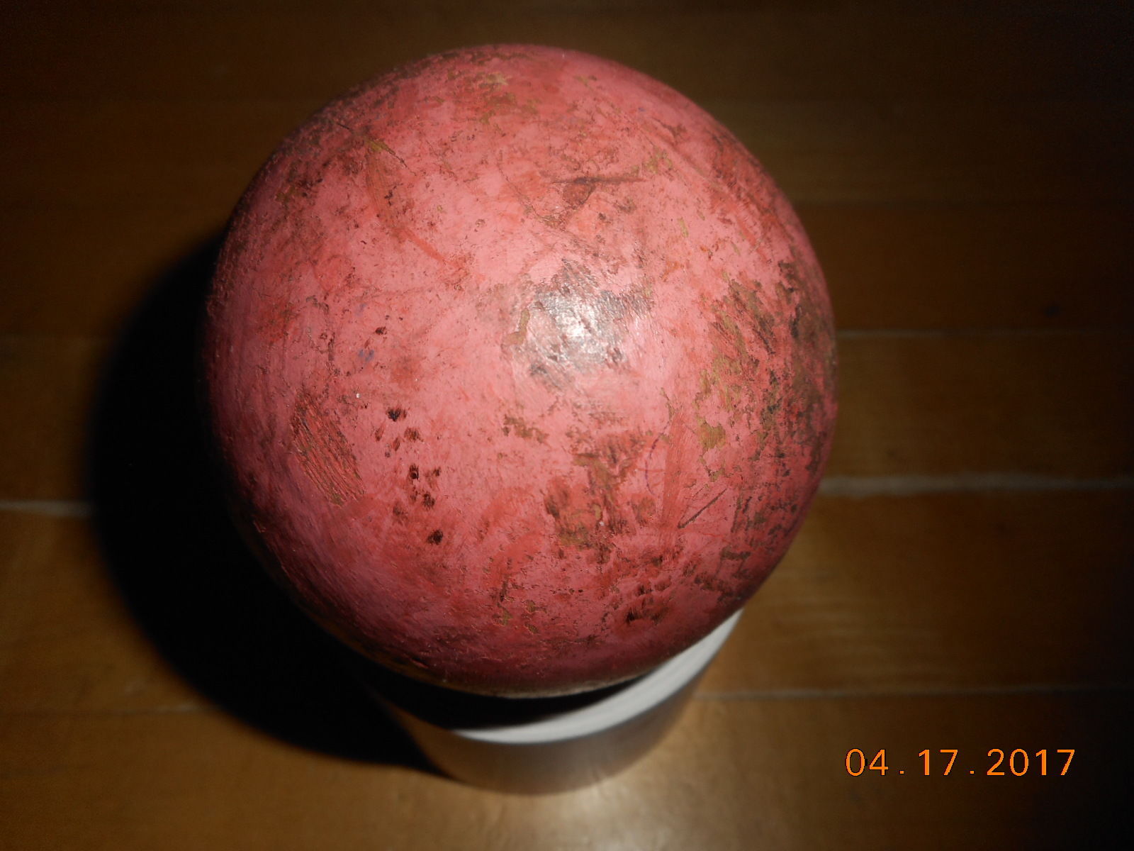 Title (ebay affiliate link): AAFA ANTIQUE CROQUET BALL BOWL FILLER GR8 BITTERSWEET ORANGE PAINT #2 of 2