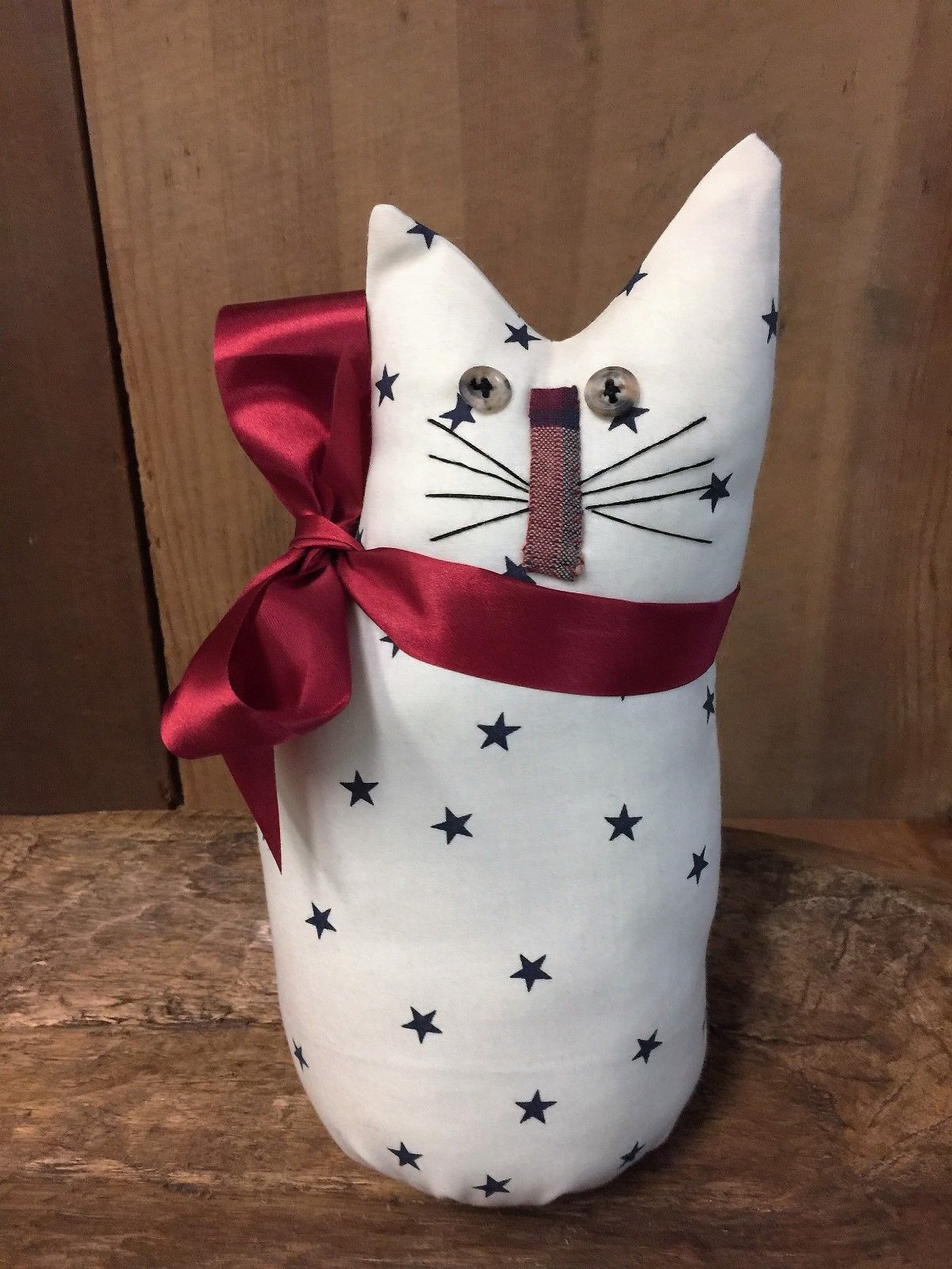 Title (ebay affiliate link): Primitive Stitchery Kitty Cat Beverly Music and Fashion Red White and Blue