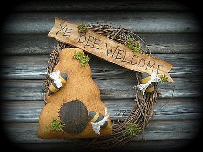 Title (ebay affiliate link): Primitive Summer!! 14" Grapevine Wreath with Bee Hive and Bees!!