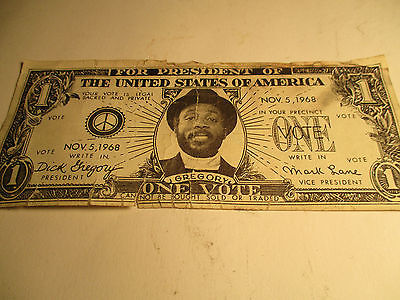 Title (ebay affiliate link): 1968 one dollar political Dick Gregory for President note