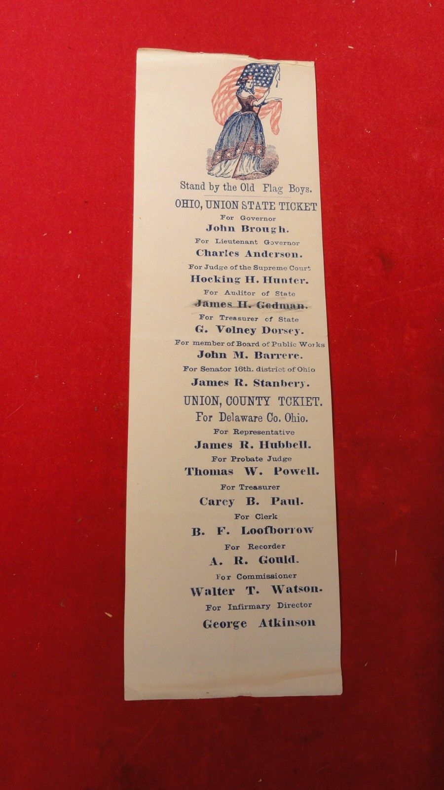 Title (ebay affiliate link): ORIG GREAT CIVIL WAR ERA OHIO ELECTION BALLOT WITH THE PRO-UNION STATE DELEGATES